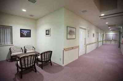 居室は、清潔感がある広い室内で、廊下は車いすが3台すれ違える広さがあります。