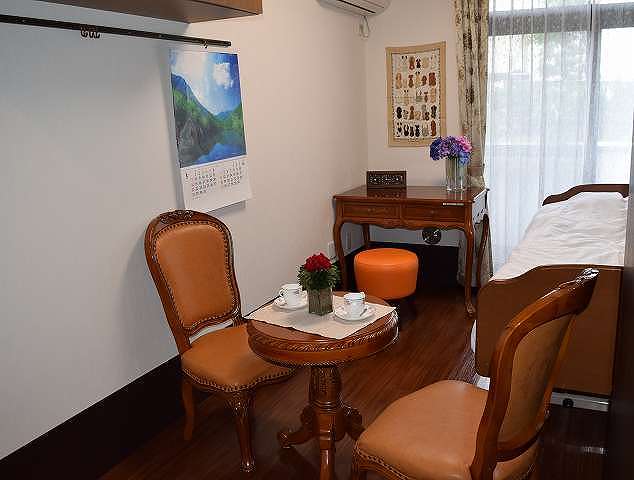 | 居室設備 | トイレ、洗面、クローゼット、天袋収納スペース、モーターベッド、ナースコール、ケアカメラ、パソコン配線、カーテン、防臭装置、加湿設備、センサー付きベランダ |