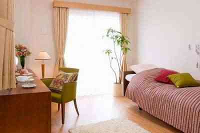 | 居室設備 | エアコン・クローゼット・介護用電動ベッド・ナースコール・車いす対応洗面台・温水洗浄機能付トイレ・メモリーボックス・カーテン・チェスト・デスク・アームチェア |