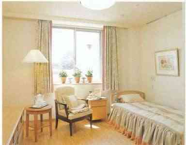 | 居室設備 | 電動式ベッド、ピクチャーレール、洗面台化粧台、ヘルパーコール、洗浄機能付きトイレ、洋服棚、木目調チェスト、 |