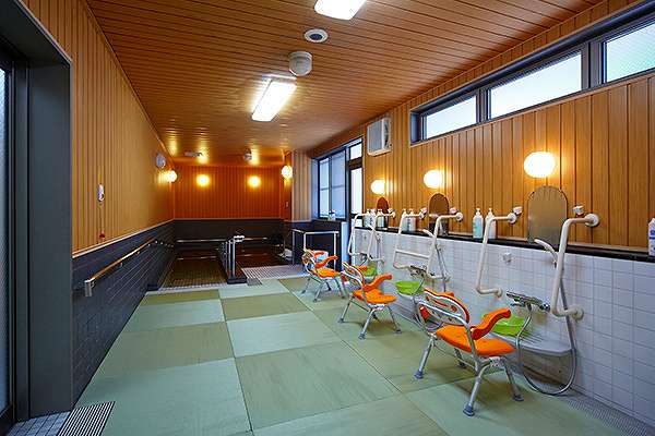 1階入り口はオートロックでセキュリティーも万全。大食堂には回想法を取り入れた昭和の思い出コーナーがあります。 4階は認知症対応フロアになっております。安全の為防水の畳を敷いてある浴室では週に1度、天然温泉をお楽しみ頂けます。