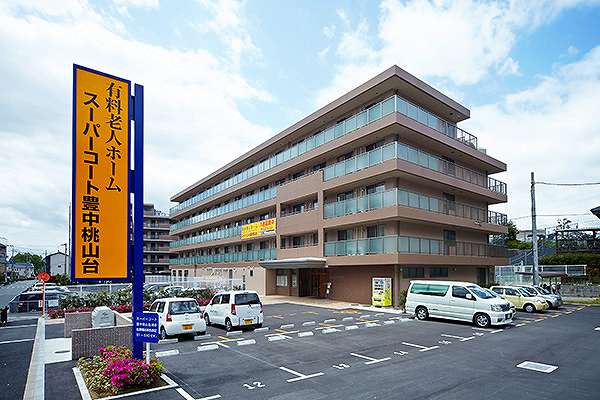 スーパー・コート豊中桃山台は北大阪急行線の桃山台駅よりバスで7分。ジオ緑地住宅前にて下車徒歩4分。閑静な住宅街にあり平成25年築の住宅型有料老人ホームです。