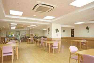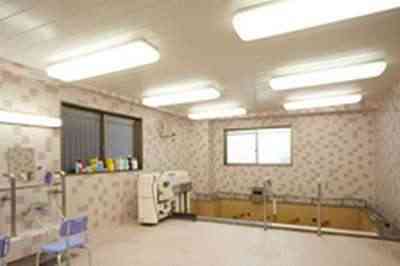 共有スペースは1階に設置された食堂は、南向きに窓があり明るく太陽が降り注ぐ空間でお食事、レクリエーションなどをお楽しみいただけます。また機械浴が設置された浴室で、週に1度は通常の入浴とは異なる本物の天然温泉のお湯をお楽しみ頂いております。