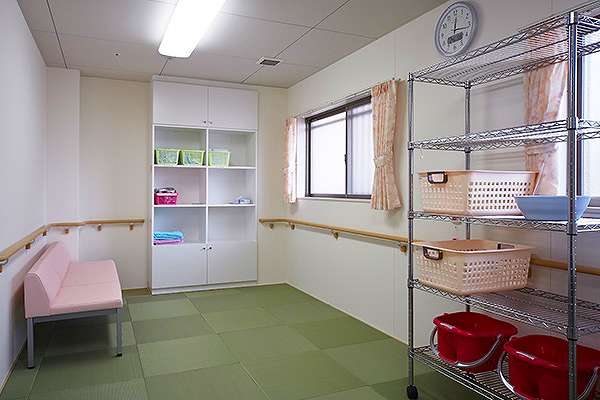 共有スペースは1階入り口はオートロックでセキュリティーも万全。3階は認知症対応フロアになっております。3階食堂には回想法を取り入れた昭和の思い出コーナーがあります。浴室は畳を敷いており安全面に配慮した造りとなっており、週に1度天然温泉をお楽しみ頂けます。