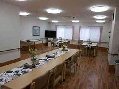 広くて明るいコミュニティスペースは、老人ホーム入居者の皆様が一同に集まれる十分な広さがあります。日々の食事はこちらで食されご家族やご来客、ご友人とお茶を楽しんだり老人ホームで開催するレクリエーション等する際も行っています。