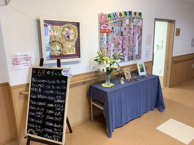 笑顔が出る環境に不安や危険は存在しないと考え、ご入居者様の笑顔が見られる環境づくりを職員一人一人がその笑顔のために働き、ご入居者様やご家族様の笑顔の絶やすことのない施設づくりを行うことをスローガンとして行ってまいります。