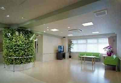 また利用者様同士の交流ができる食堂・談話室は、壁面の一部が土に代わる新素材「パフカル」で育てた緑や花で飾られており、自然環境にも配慮した空間で、利用者様の交流に彩りを添えています。
