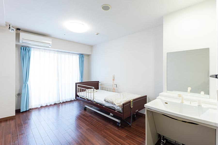 | 居室設備 | エアコン、洗面所、トイレ、ケアコール、スプリンクラー、介護ベット |
