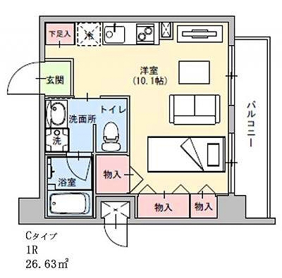 | 居室設備 | エアコン、キッチン、クローゼット、フローリング、温水洗浄機能付きトイレ、化粧洗面台、人感センサー、物干しベランダ、浴室 |