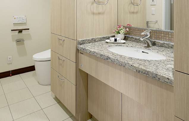 | 居室設備 | エアコン、リビング床暖房、IHクッキングヒーター、電話(内線専用)、ドアチャイム連動型緊急インターホン、暖房便座付きウォシュレットトイレ、緊急コール、生活安全センサー、熱感知器、緊急用居室内スピーカー、スプリンクラー、ガス式乾燥機能付き浴室、インターネット(要個別契約) |