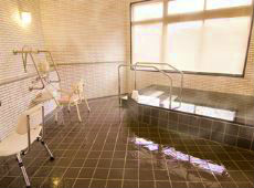 玄関ホール・陰圧ルーム・食品庫・応接室・厨房室・汚物処理室・フロント・ 食堂・リネン室・共用トイレ・介護浴室・天然温泉・機械浴槽・ 洗濯室・自動販売機・ナースステーション・防災設備・避難設備 |
