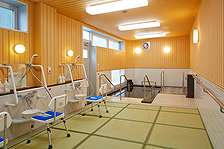陽のあたる1階食堂では、お食事、毎日の体操とレクレーション、定期的なイベントを開催しており、皆さまの憩いの場所として使用していただけます。また、入浴は浴室が完備、週2回の入浴のうち1回は天然温のお湯を、お楽しみ頂けます。1階入り口はオートロックでセキュリティーも万全。1階~3階に各居室スペースあり、1階には安全の為防水の畳を敷いてある大浴場。週に1度、天然温泉をお楽しみ頂けます。