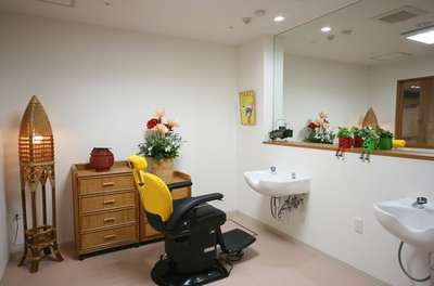 施設の設備面では、浴室には「機械浴」「リフト浴」を設置しており、様々な状態のご利用者様にも快適な入浴を提供します。和室では、お茶会などを通じて、畳の感触も楽しんでいただけます。理美容室には本格的な理美容椅子と洗面台を設置し、お申込みいただきますと、ヘアサロンの雰囲気の中カットからパーマまでご利用いただけます。