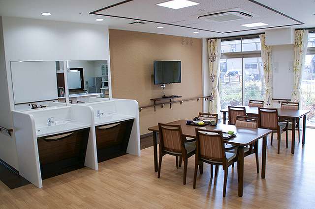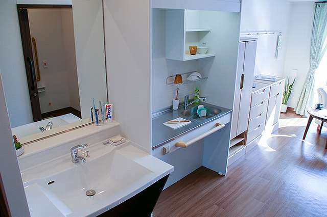 | 居室設備 | 電動ベッド、ミニキッチン、エアコン、洗面、暖房便座付トイレ、緊急呼出装置、 クロゼット(収納)、洗濯機スペース、固定電話設置可能 ※浴室は居室タイプにより設置 |
