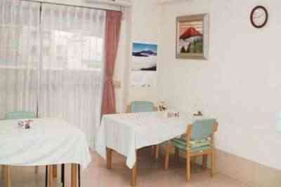 | 居室設備 | フローリング、フラットフロア、引き戸式ドア(玄関)、引き戸式ドア(居室内)、トイレ、車椅子対応トイレ、鏡、化粧洗面台、車椅子対応洗面化粧台、シャワー、電動介護ベッド、タンス、間接照明、カーテン、防火カーテン、防災設備、避難設備、ナースコール、ミニキッチン、エアコン、ケーブルテレビ回線、物干しベランダ |