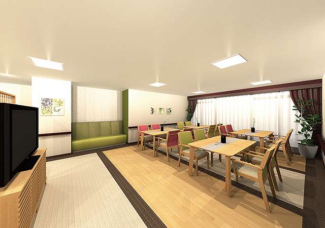 | 共有設備 | エントランスロビー、食堂兼機能訓練室、応接相談室、理美容室、健康管理室、浴室(個浴1、大浴槽1、特殊浴槽2(寝台浴、チェア浴)、エレベーター2台(寝台15人乗、客用11人乗) |
