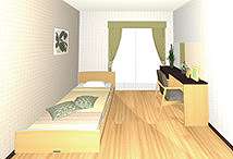 | 居室設備 | 介護ベッド、洗面台、収納、トイレ、エアコン、照明、TV端子、電話ジャック、緊急通報装置 |