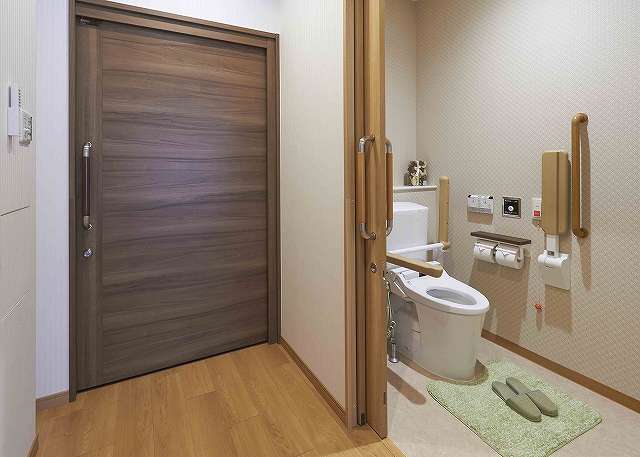 | 居室設備 | 介護用電動ベッド/寝具/照明/冷暖房/クローゼット/洗面所/ 防火設備(スプリンクラー、熱感知器、非常時放送スピーカー)/トイレ(洗浄機能付)/防炎カーテン/ケアコール/テレビ回線/電話回線 |