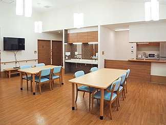 2階建ての住宅で、各フロア9名で生活する家庭的な環境です。全室個室なのでプライバシーを確保しつつ、共有スペースであるデイルームではご入居者様同士の交流もあります。