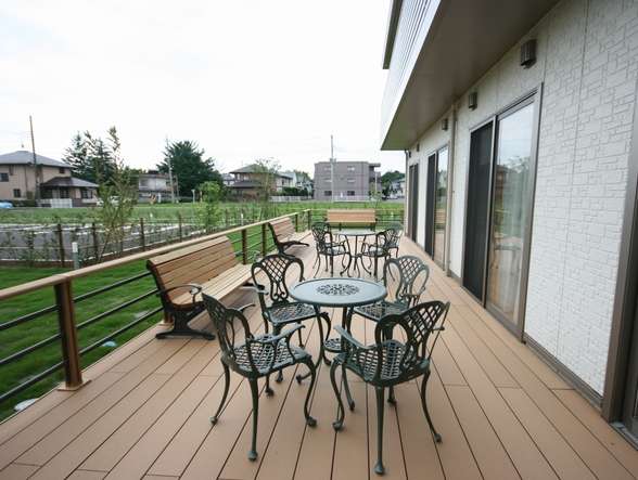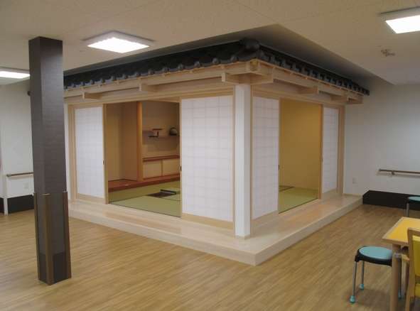| 共有設備 | 食堂兼機能訓練室、厨房、相談室、静養室(茶室・和室)、浴室(個浴・機械浴)、脱衣室、洗面所、事務室、理美容室、談話コーナー、坪庭、口腔ケアコーナー、キッチン、リネン庫、洗濯室、汚物処理室、車椅子用トイレ、エレベーター、下足箱、テラス、駐車場 |