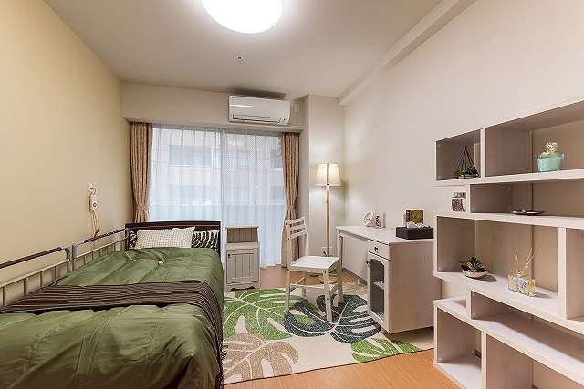 | 居室設備 | バリアフリー設計(手すり設置・段差なし)、温水洗浄機能付トイレ、エアコン、電動介護ベッド(寝具付)、ケアコール(ハンディコール)、洗面台、クローゼット |