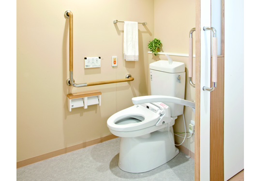 居住空間は完全個室制なので、プライバシーも安心です。室内には緊急通報装置、エアコン、洗面化粧台、温水洗浄機付きトイレも完備。