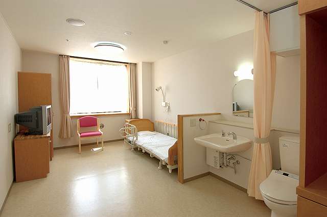 | 居室設備 | エアコン、ナースコール、収納棚、トイレ、洗面台、ベット、イス、ワードロープ、チェスト、カーテン、スプリンクラー |