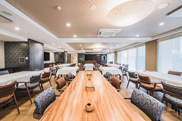 メインラウンジには南木曽の欅テーブルを配し、ホーム内各所にこだわりぬいた和テイストのデザインをあしらった高級感溢れる空間を演出しています。木のぬくもり、本物の素材感を味わうことのできる憩いの我が家でお過ごしいただけます。