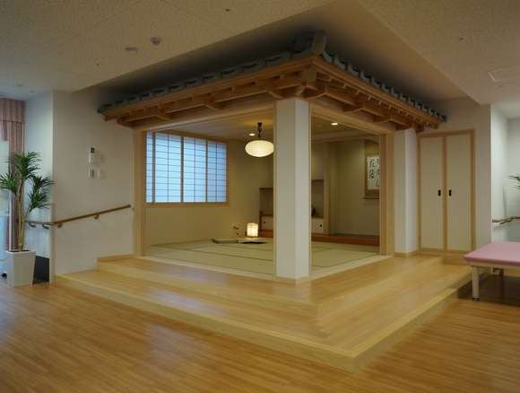他にも、共同浴室の前には温泉や銭湯を連想させる「湯のれん」や食堂入口に灯る「行灯」などで、ご入居者様を温かくお招きしています。