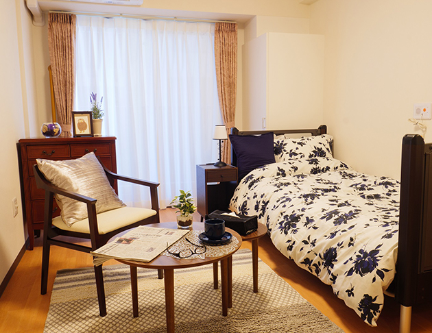 | 居室設備 | 介護ベッド・エアコン・クローゼット・カーテン・照明器具・トイレ・洗面台・緊急コール等 |