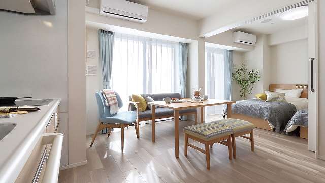 終の住処として安心して永く暮らせるように、併設の介護事業所がご利用いただけるスイートルームと、24時間介護付きの安心サポートが整ったケアレジデンスを併設。
