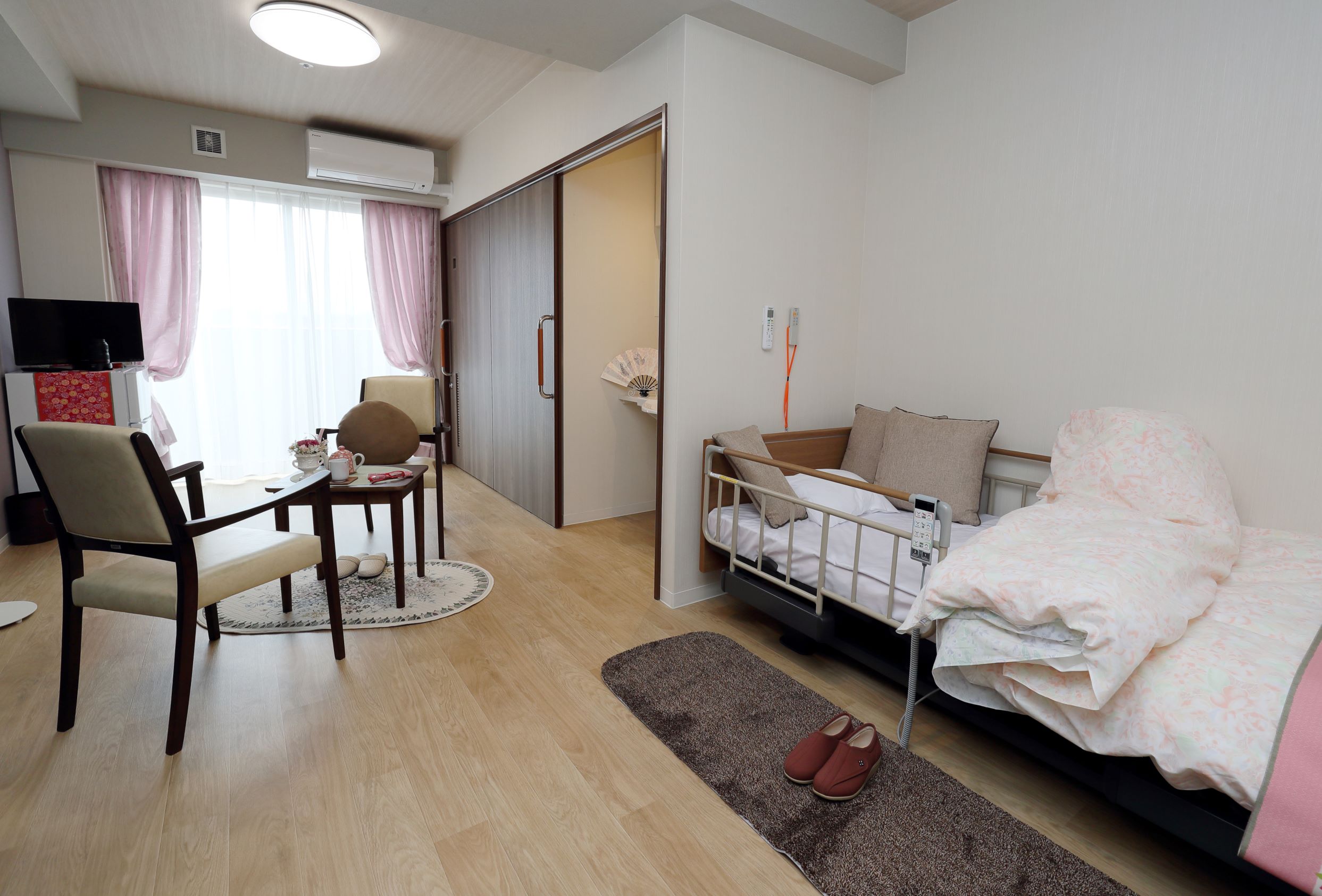 | 居室設備 | トイレ、洗面台、エアコン、介護ベッド、チェスト、クローゼット、テーブル・椅子(2脚)、テレビ、冷蔵庫、緊急通報装置(ナースコール)、カーテン |