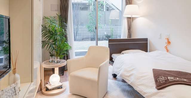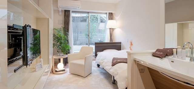| 居室設備 | エアコン、介護対応型電動ベッド(寝具付)、緊急コール、車いす対応型洗面台、温水洗浄機能付トイレ |