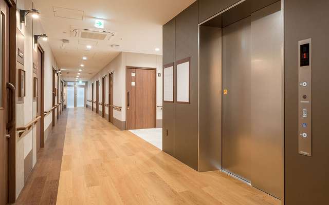 | 共有設備 | エントランスロビー、健康管理室、洗濯室、化粧室、理美容室、食堂兼機能訓練スペース、看護・介護職員ステーション、一般浴室、機械浴室、多目的室、エレベーター |