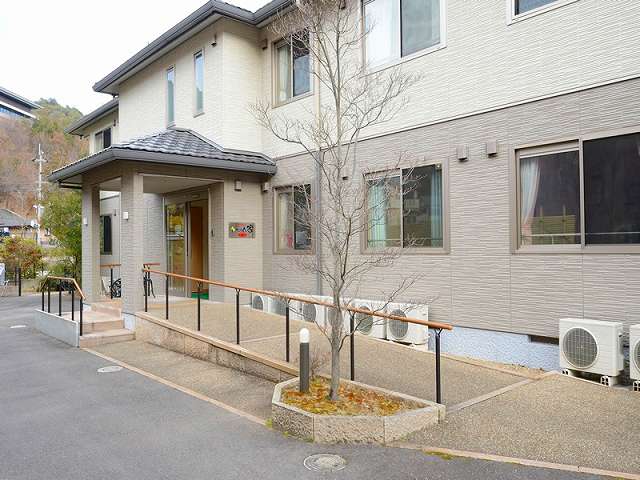 たのしい家 高雄(認知症グループホーム)は、京都駅または四条烏丸駅から周山、栂ノ尾方面のバス(市バス又はJRバス)に乗り、高鼻町で下車し、徒歩約5分のところにある緑に囲まれたホームです。