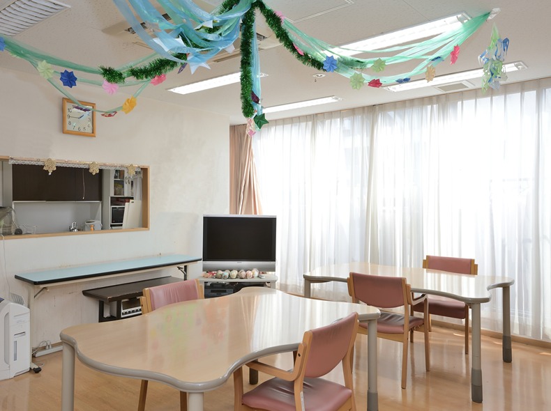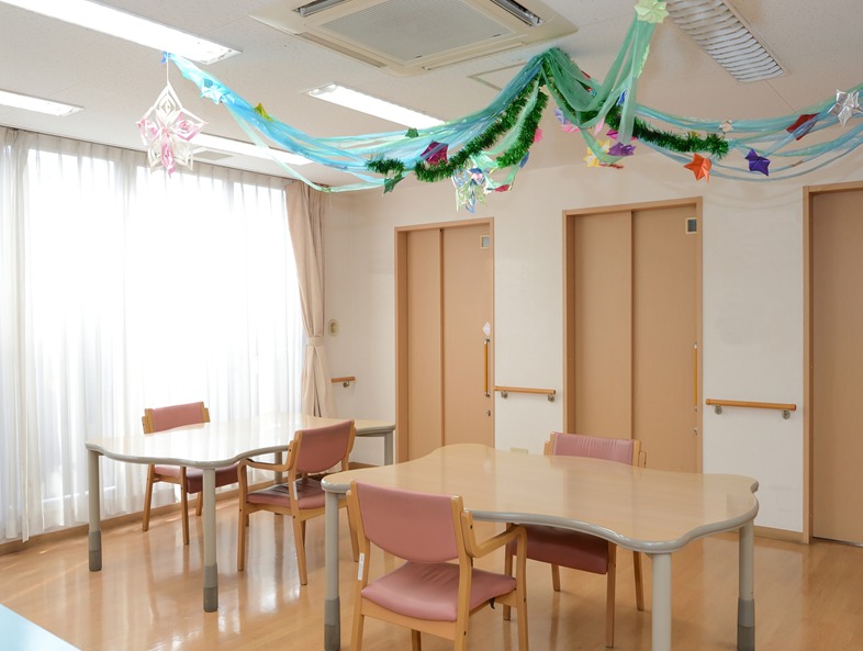 | 共有設備 | 大食堂・居間、厨房設備、浴室、洗濯室、冷暖房完備、面談室、水洗トイレ、エレベーター、洗面脱衣室、緊急通報システム、駐車場、スプリンクラー |