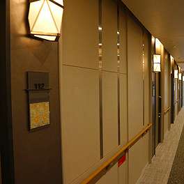 緊急コールボタン(ベッド・トイレ)、エアコン、温水洗浄トイレ(背もたれ、両側手すり付)、洗面台、TV端子及び電話機端子、電動ベッド、寝具、カーテン、デスク、チェア、収納 ツインルームのみ:ミニキッチン・ユニットバス・トランクルーム |