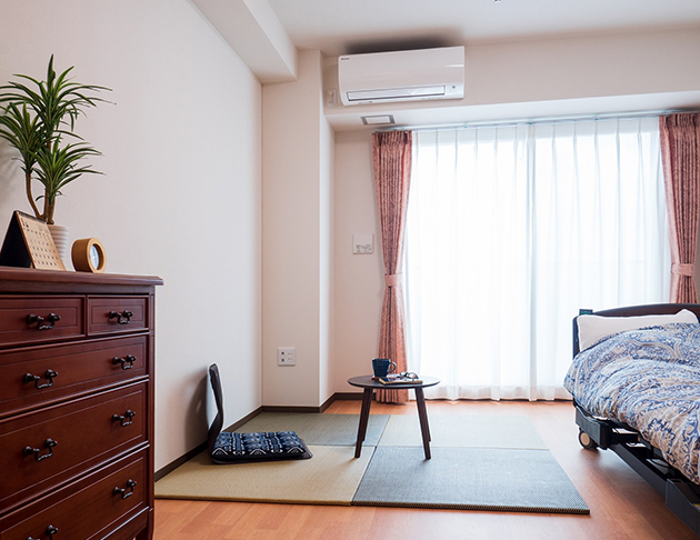 | 居室設備 | 介護ベッド・エアコン・カーテン・照明器具・トイレ・洗面台・緊急コール等※一部クローゼット |