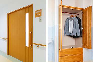 | 居室設備 | 収納家具、冷暖房、天井照明、温水洗浄便座付トイレ、洗面台、カーテン、フットライト、、 緊急通報ボタン、スプリンクラー |