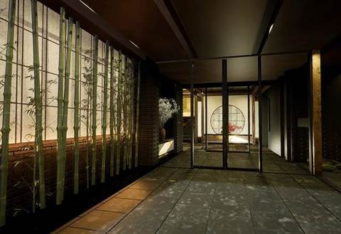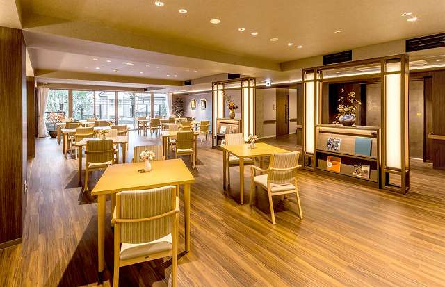 エントランスには日本の美を感じさせる竹と和紙をふんだんに使用、黒を基調としたシックで落ち着きのあるホームには、障子や木製格子を設えています。また、花鳥風月をモチーフにした鮮やかな空間が、日々の生活空間に旅さらに詳しく