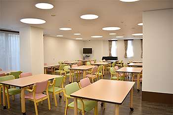| 共有設備 | 食堂、浴室(一般浴・機械浴・個浴)、ヘルパーステーション、健康管理室、談話コーナー、理美容室、相談室、事務室、洗濯室、トイレ、エレベーター |