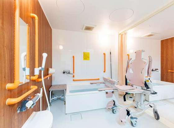 座位が難しい方や寝たきりの方でも安全に入浴していただける機械浴室もございます。