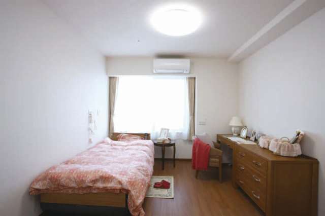 一人居室:トイレ、昇降式洗面カウンター、ベッド、エアコン 二人居室:トイレ、昇降式洗面カウンター、ベッド、エアコン、ユニットバス、キッチン |