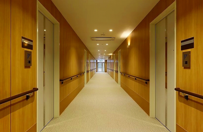 ホールは安心のバリアフリー設計、車いすや杖歩行等でも安心して通行頂けるスロープとなっております。