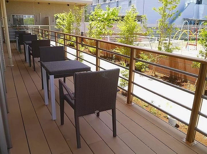 南向きの日当たりが良いテラスは、近隣に憚る建物が無く、良好の過ごしやすい憩いの場所となっております。