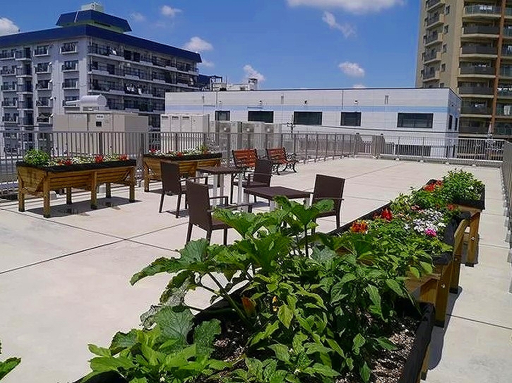 屋上ではお持込いただいたプランターを育てていただくことも、ご歓談の場としてもご利用いただけます。