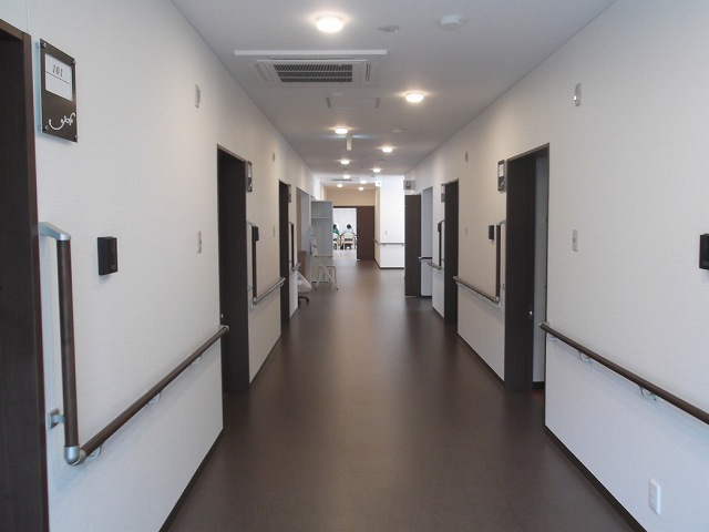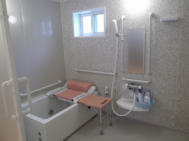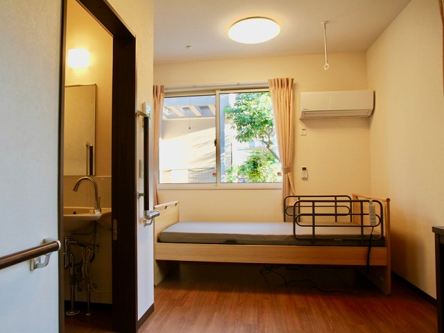 | 居室設備 | トイレ温水便座、エアコン、ナースコール、クッションフロア、バリアフリー、地上波アンテナ、BSアンテナ、冷蔵庫、カーテン、介護用ベッド、引き戸式ドア、照明器具、洗面化粧台、避難設備、防災設備、トイレ内手すり、室内物干し器具、収納、リフト浴、防火カーテン |