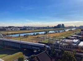 グランドマスト新丸子と多摩川の河川敷は目と鼻の先。自然豊かな環境の中散歩やジョギングを楽しんだり、周辺に高い建物がないため、最上階10階にあるラウンジのテラスからは多摩川や川崎の中心部が見渡せ、天気の良いさらに詳しく
