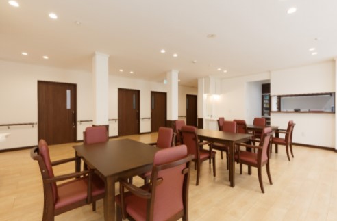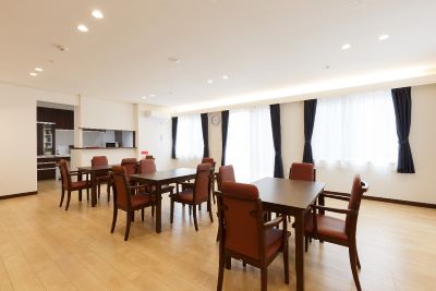 日当たりの良い明るいリビングでは、皆さんでゲームや手作り、音楽などを楽しまれています。ご自分のペースで新聞など読まれながらひと時を過されている方もいらっしゃいます。 リビングに面したテラスは、日光浴に最適、季節を感じ会話も弾みます。高速道路沿いとは思えない静かな住宅地です。 ホームの日々の様子はブログでご覧いただけます。
