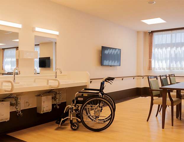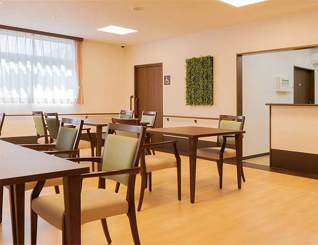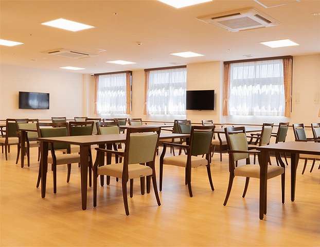 居室は全50室すべてが個室で、共同生活といえどもご自身のプライベート空間はしっかりと確保された場所でご生活いただけます。その一方で、共有フロアには気軽に集まりやすい空間をご用意しておりますので、ご入居者同士や職員との交流を楽しんでいただけます。